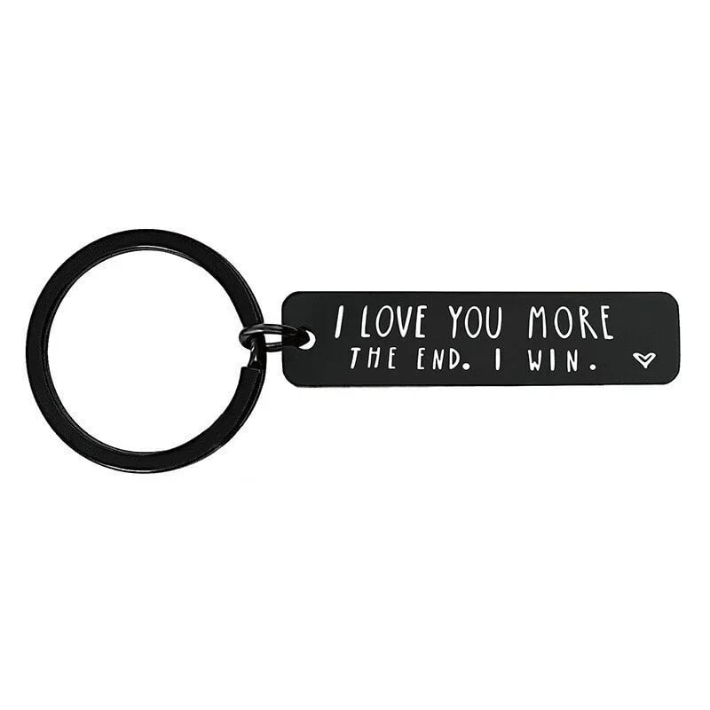 😍How about a delicate and fun keepsake silver keyring?--“ I LOVE YOU MORE. THE END. I WIN. "